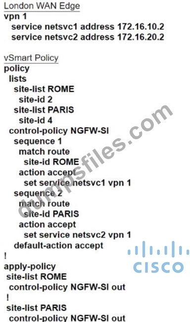 - Q21. An engineer must configure a centralized policy on a site in which all HTTP traffic should...