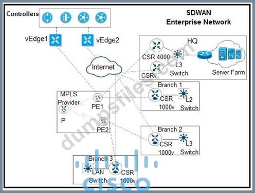 - Q339. Refer to the exhibit. (Exhibit) The network team must configure branch B WAN Edge device 1...