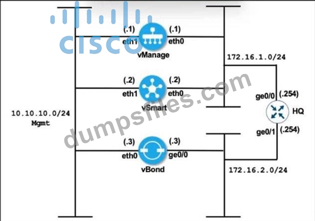 - Q41. (Exhibit) Refer to the exhibit Cisco SD-WAN is deployed with controllers hosted in a data ...