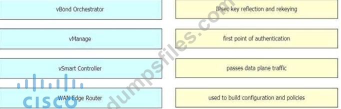 Drag and drop the Cisco SD-WAN components from the left onto their functions on the right.