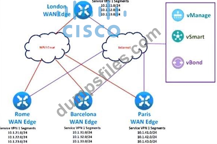 - Q163. Refer to the exhibit. A Cisco SD-WAN network carries traffic for several departments and o...