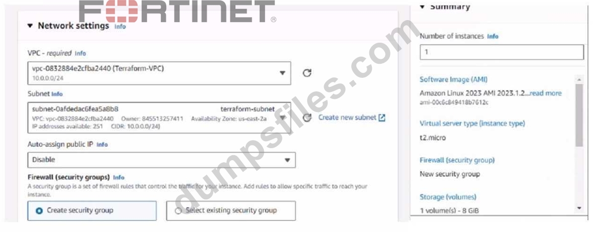 - Q45. Refer to the exhibit. You are tasked with deploying a webserver and FortiGate VMS in AWS. ...