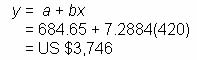 Substituting the given data into the regression equation results in a budgeted cost of US $3,746 (rounded to the nearest US dollar):