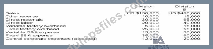 A and B, are autonomous divisions of a corporation. They have no beginning or ending inventories, and the number of units produced is equal to the number of units sold. Following is financial information relating to the two divisions:
