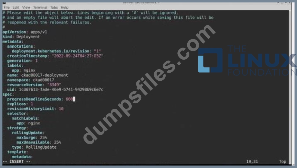 - Q9. (Exhibit) Task: 1) First update the Deployment cka00017-deployment in the ckad00017 namesp...