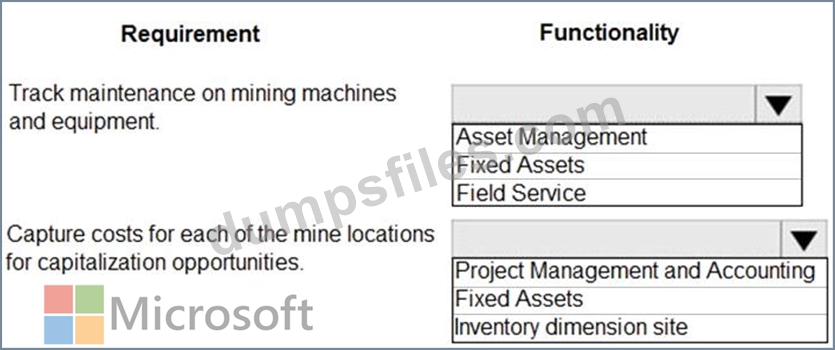 A mining company is upgrading their system to Dynamics 365 Finance and Dynamics 365 Supply Chain Management.