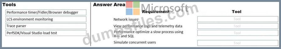 An organization uses Dynamics 365 Finance and Dynamics 365 Supply Chain Management. The organization is experiencing various performance issues and is looking for solutions. You need to recommend tools to determine the cause of the performance issues.