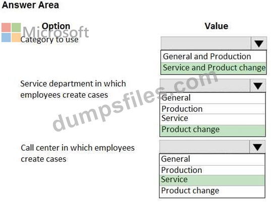 Which Case management settings should you choose for each category or categories? To answer, select the appropriate options in the answer area.
