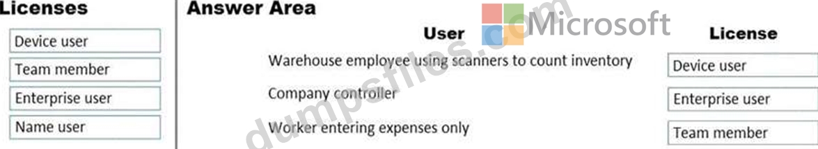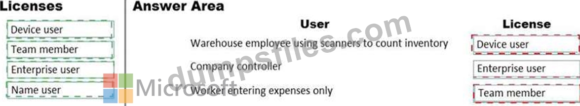 Which type of license should you recommend? To answer, drag the appropriate licenses to the correct users.