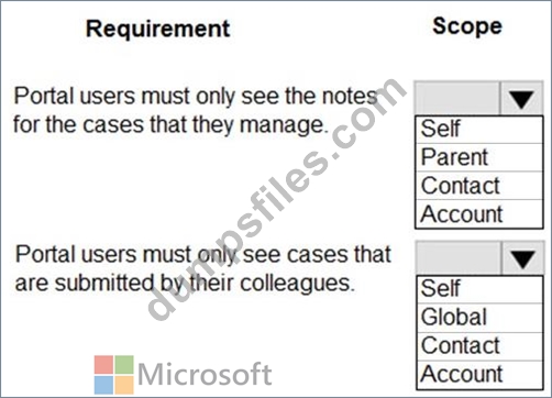 A company plans to create a Power Apps portal to manage support cases for customers. The company has an account hierarchy for customers. The hierarchy supports accounts, cases, and contacts where both contacts and cases belong to their relevant account.
