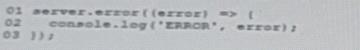The server library is imported with require and is made available to the code by a variable named server. The developer wants to log any issues that the server has while booting up.