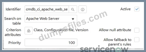 Assume an Apache Web Server Identifier Entry is configured as shown: