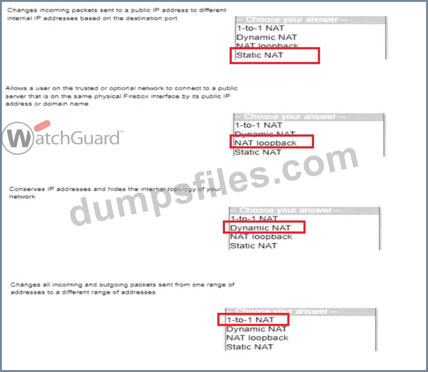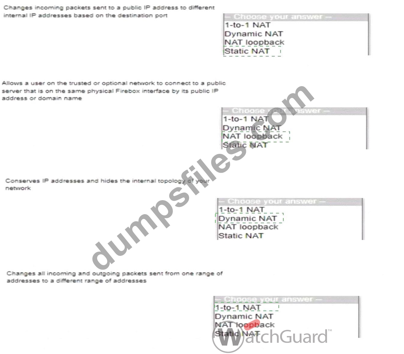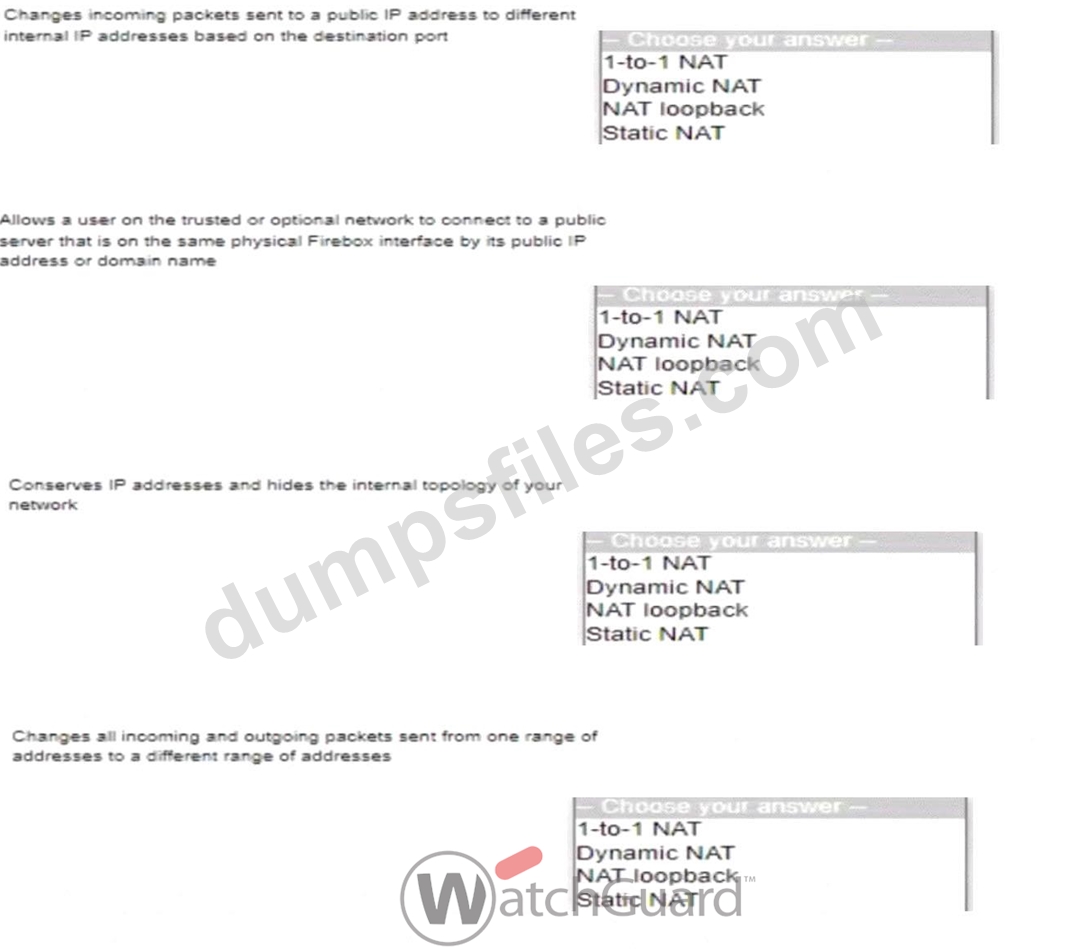 - Q7. Match each type of NAT with the correct descriptor (Exhibit)...